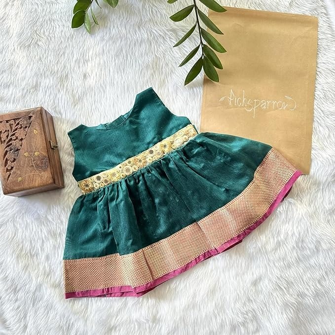 💚COTTON SILK FROCK –The elegant outfit is suitable for baby girls and can be used for any festive occasion like the naming ceremony, birthday celebration, Onam, Vishu, etc. The traditional Kerala Kasavu frock can be used for your little one’s naming ceremony (Newborn Baby Irupathettu, Choroonu attire) or for that traditional photoshoot you have been planning for.