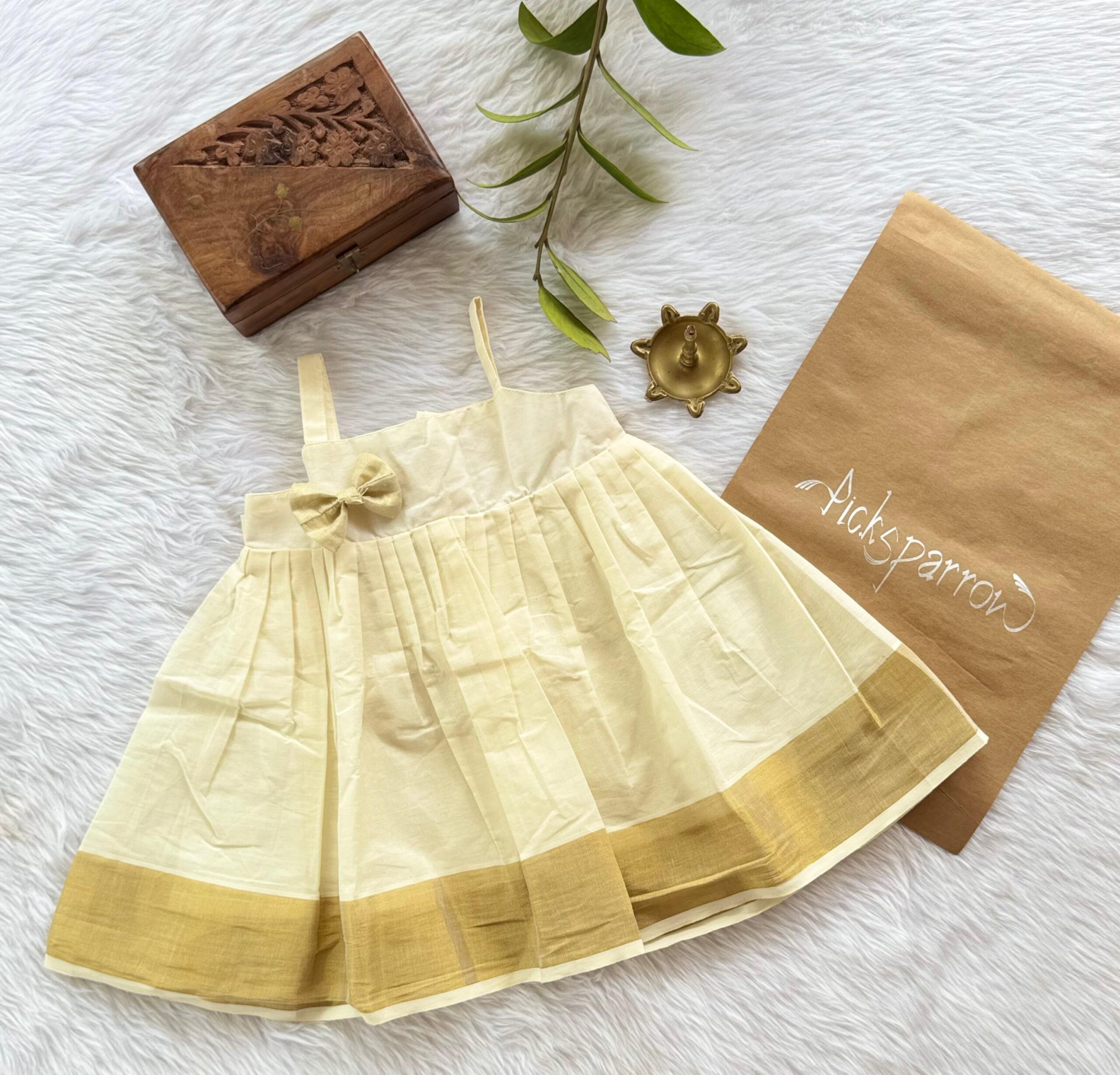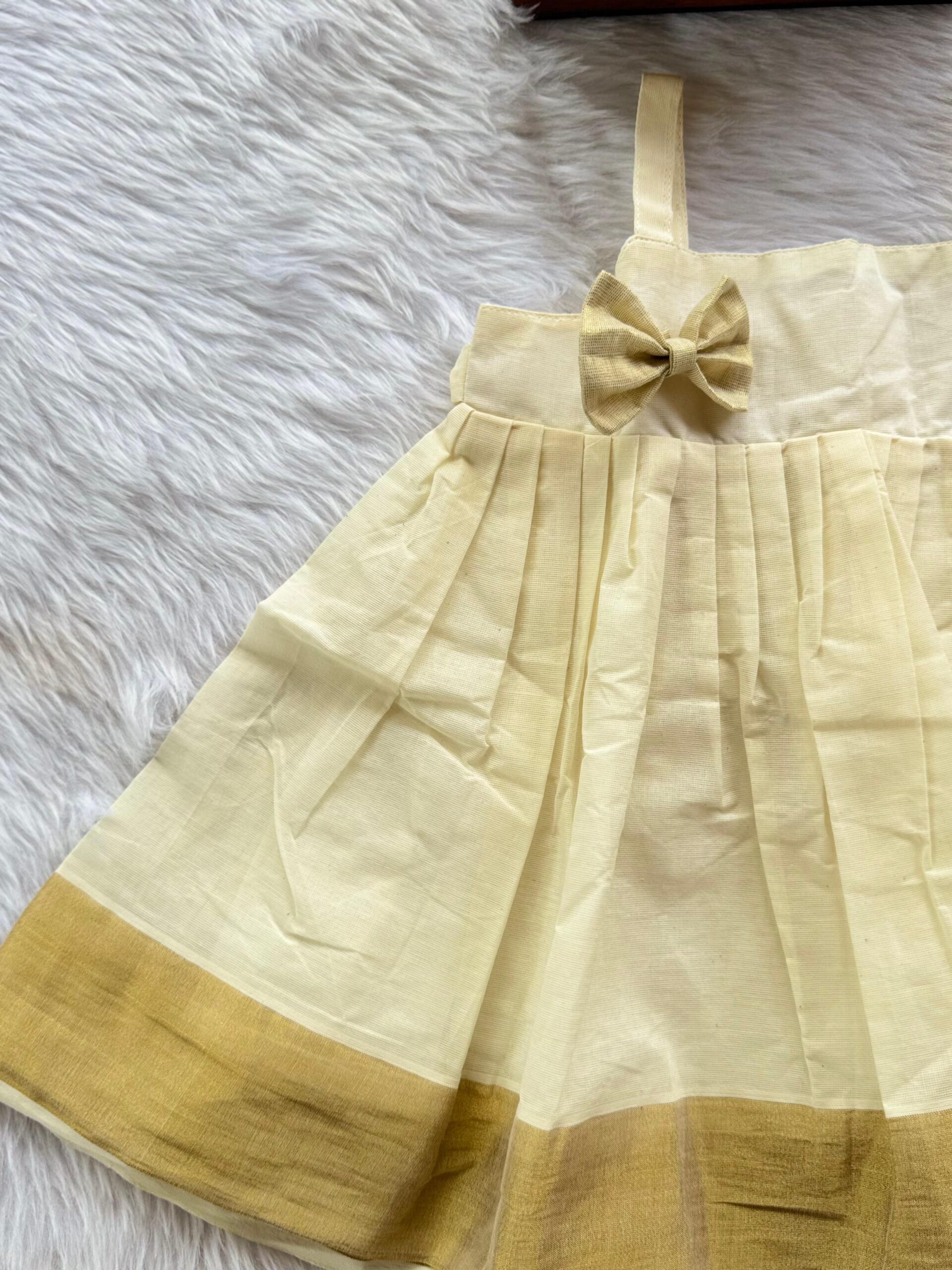 💚KERALA KASAVU COTTON FROCK –Special occasion wear/Traditional wear/Ethnic wear for your little princess from Picksparrow. The elegant outfit is suitable for baby girls and can be used for any festive occasion like the naming ceremony, birthday celebration, Onam, Vishu, etc. The traditional frock can be used for your little one’s naming ceremony (Newborn Baby Irupathettu, Choroonu attire) or for that traditional photo shoot you have been planning for.