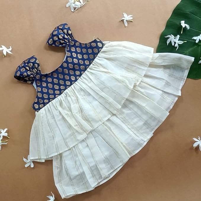 💚COTTON SILK – KERALA COTTON FROCK –Special occasion wear/Traditional wear/Ethnic wear for your little princess from Picksparrow. The elegant outfit is suitable for baby girls and can be used for any festive occasion like the naming ceremony, birthday celebration, Onam, Vishu, etc. The traditional frock can be used for your little one’s naming ceremony (Newborn Baby Irupathettu, Choroonu attire) or for that traditional photo shoot you have been planning for.