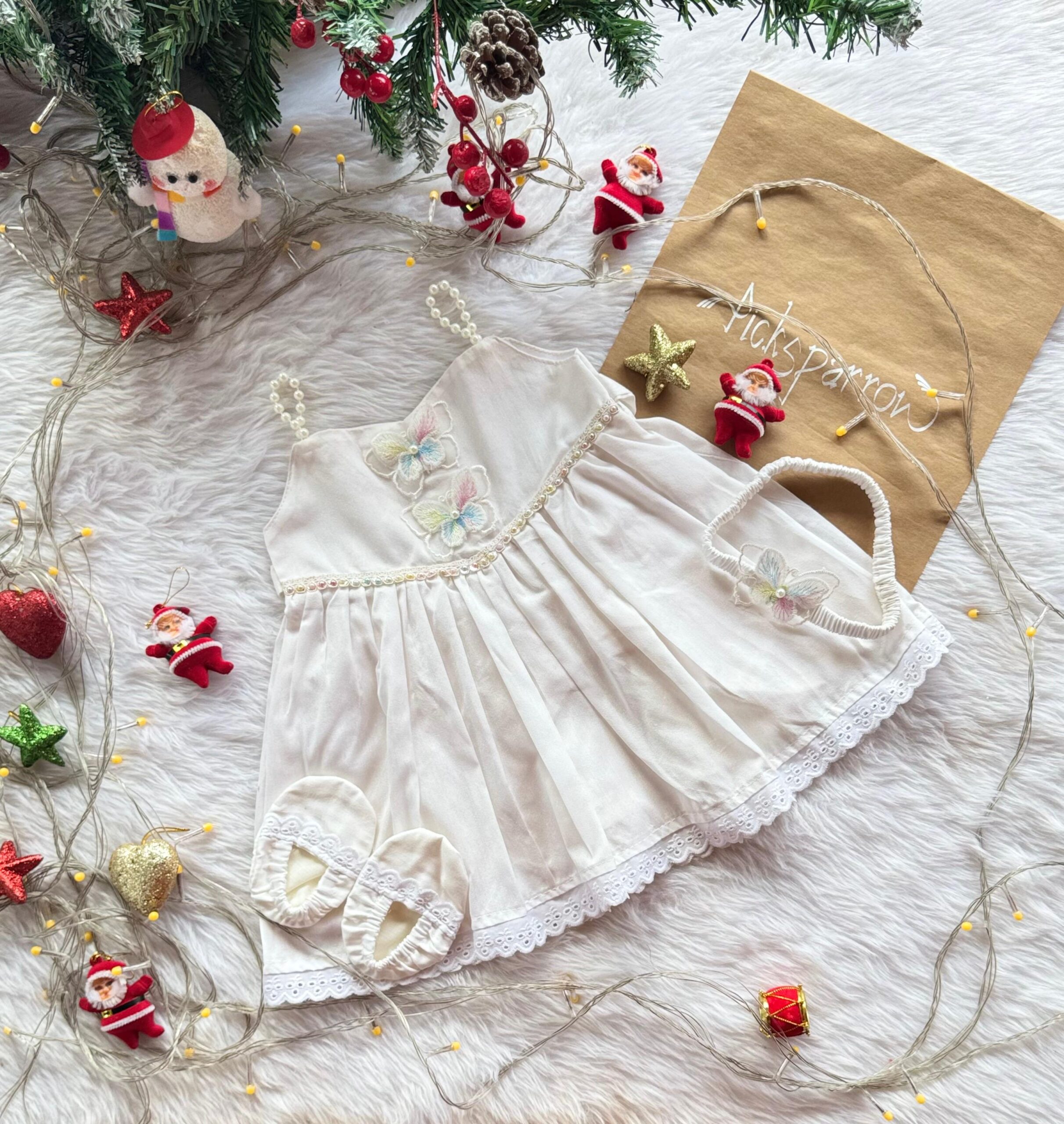 💚COTTON SILK BUTTERFLY – BEADS SHOULDER KNOT FROCK – Special occasion wear for your little princess from Picksparrow. The elegant outfit is suitable for baby girls and can be used for special/festive occasions like baptism, first birthday, Christmas, Easter ,naming ceremony, birthday celebration etc.