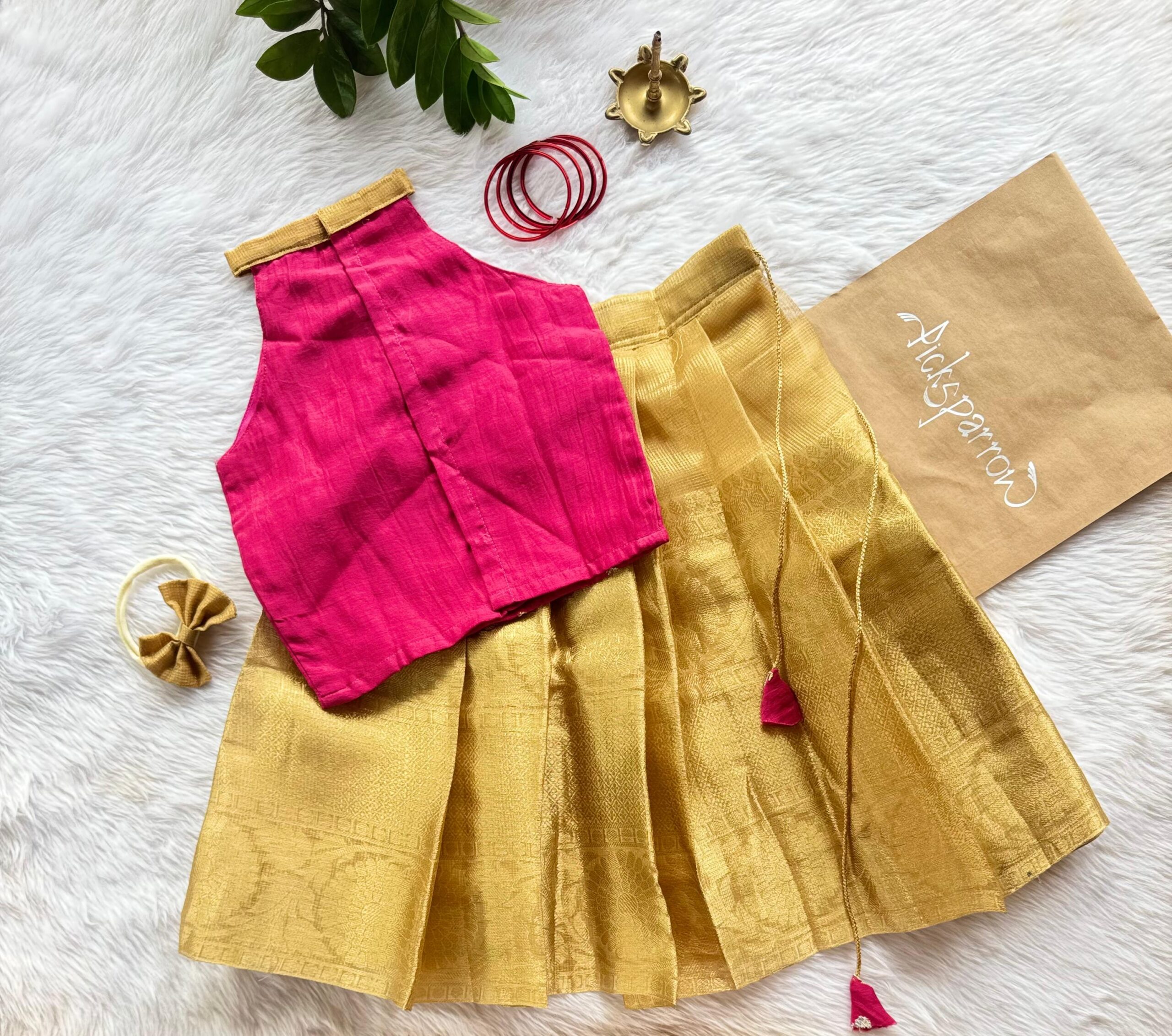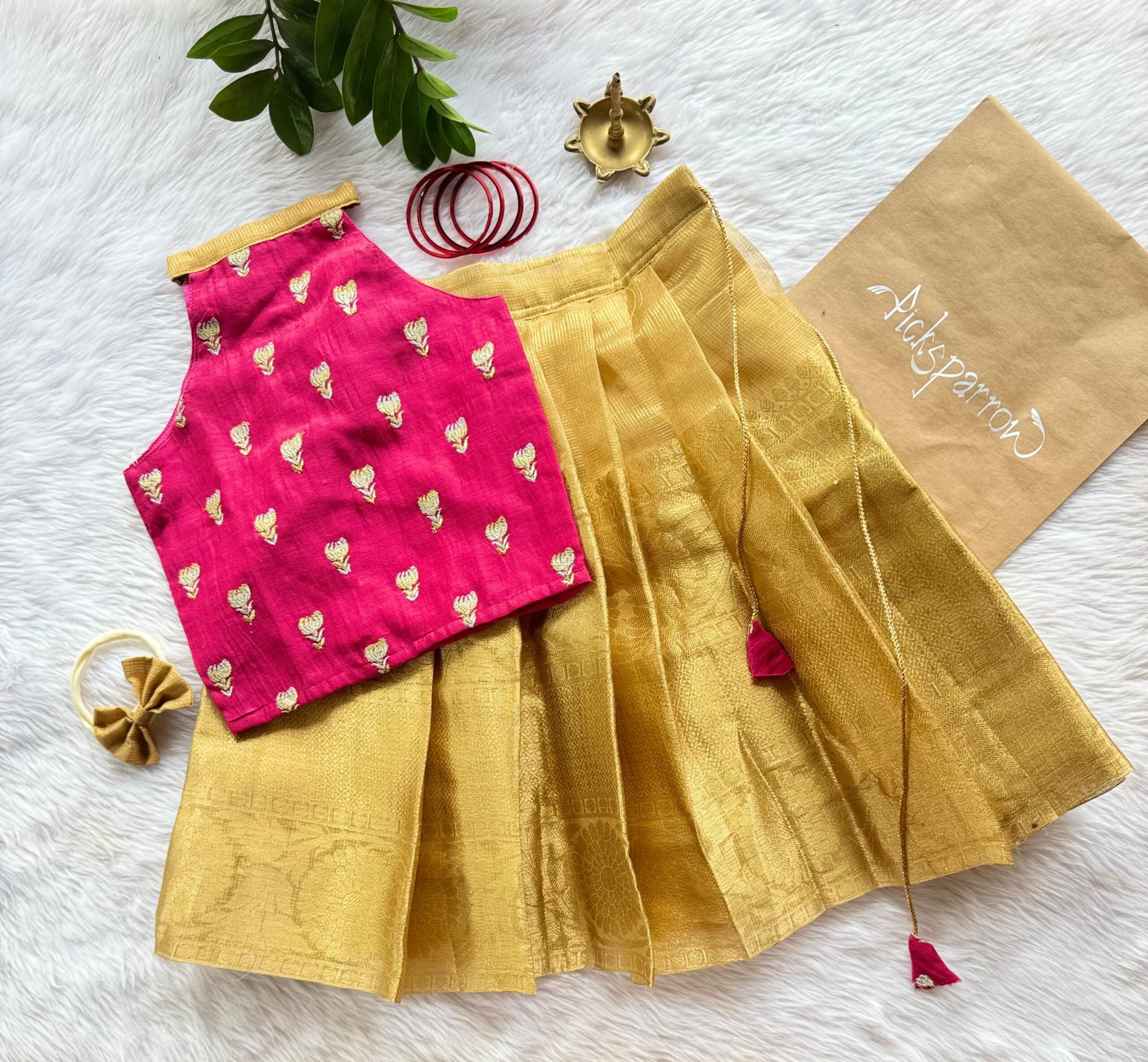 💚 COTTON SILK – TISSUE SILK PATTUPAVADA – Pattupavada/Traditional wear/Ethnic wear for your little princess from Picksparrow. The elegant outfit is suitable for baby girls and can be used for any festive occasion like the Diwali, birthday celebration, Onam, Vishu, Pongal etc.