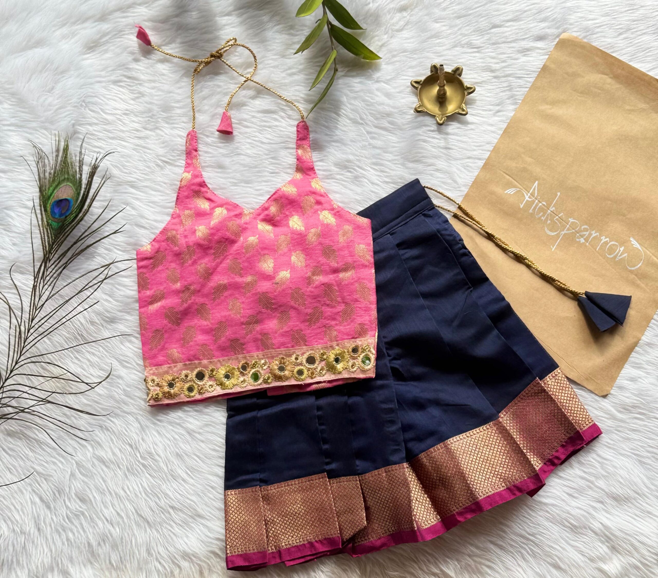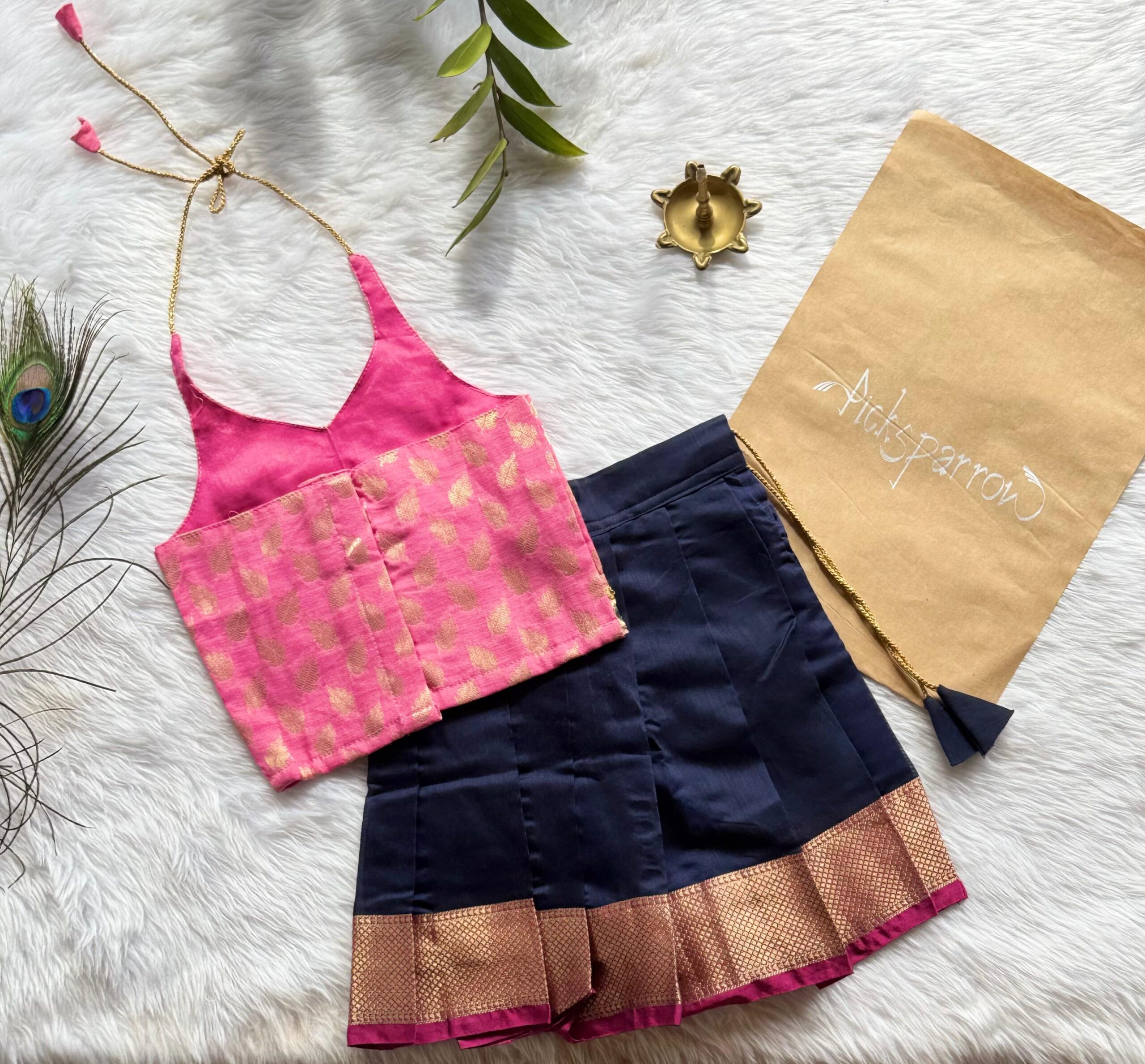 💚 CHANDERI – COTTON SILK PATTUPAVADA – Pattupavada/Traditional wear/Ethnic wear for your little princess from Picksparrow. The elegant outfit is suitable for baby girls and can be used for any festive occasion like the naming ceremony, Diwali, birthday celebration, Onam, Vishu, Pongal etc.