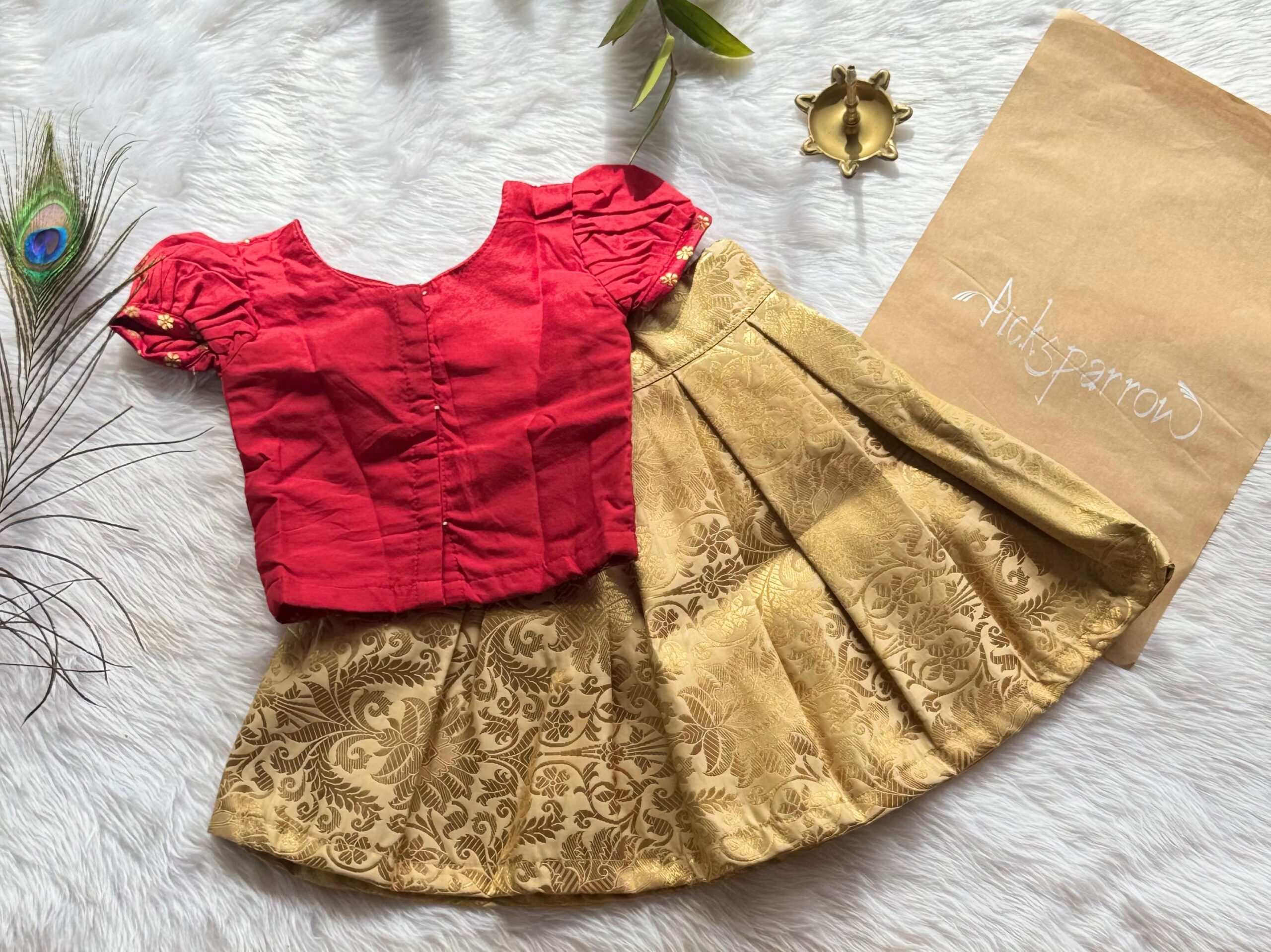 💚 COTTON SILK – BANARASI PATTUPAVADA – Pattupavada/Traditional wear/Ethnic wear for your little princess from Picksparrow. The elegant outfit is suitable for baby girls and can be used for any festive occasion like the naming ceremony, Diwali, birthday celebration, Onam, Vishu, Pongal etc.