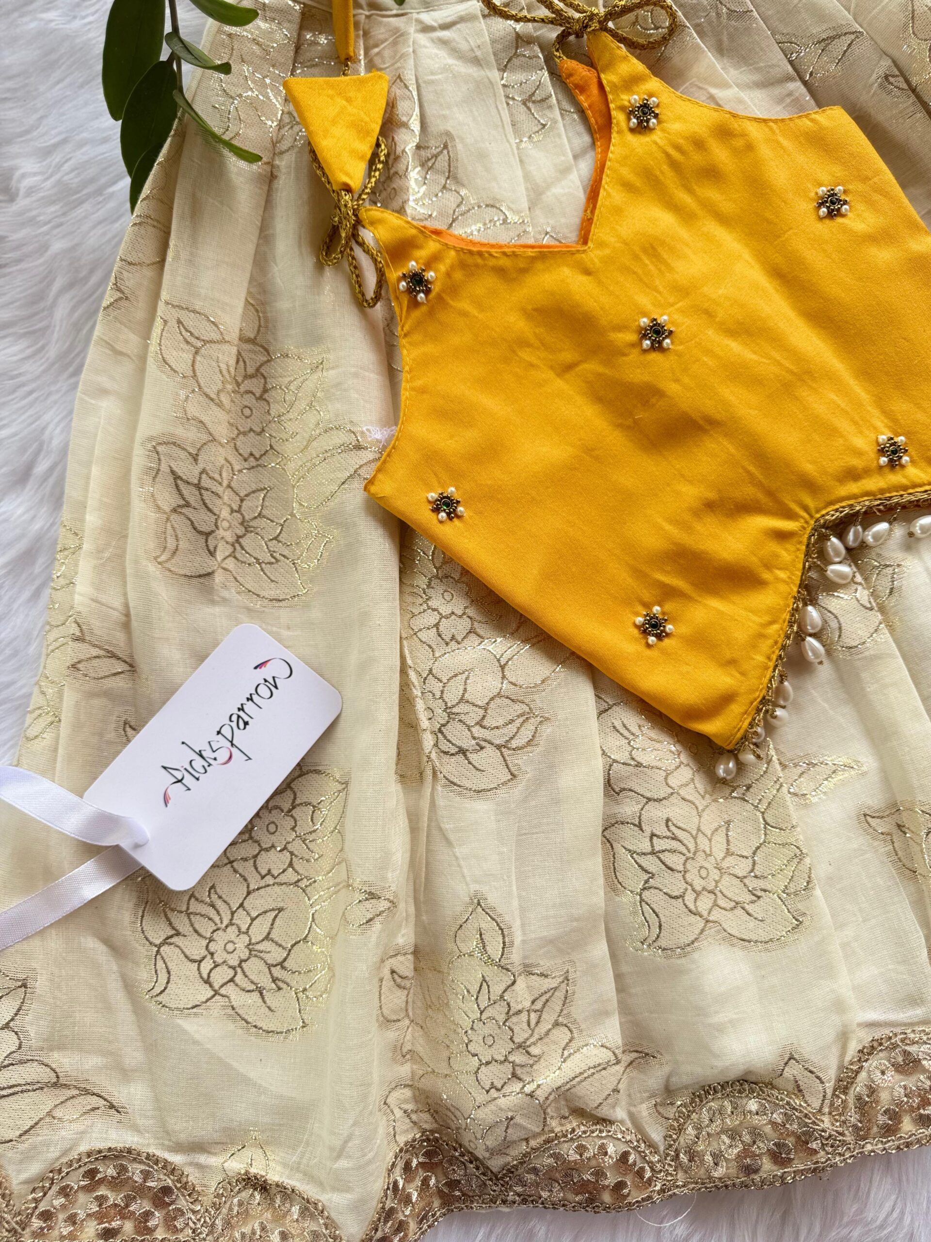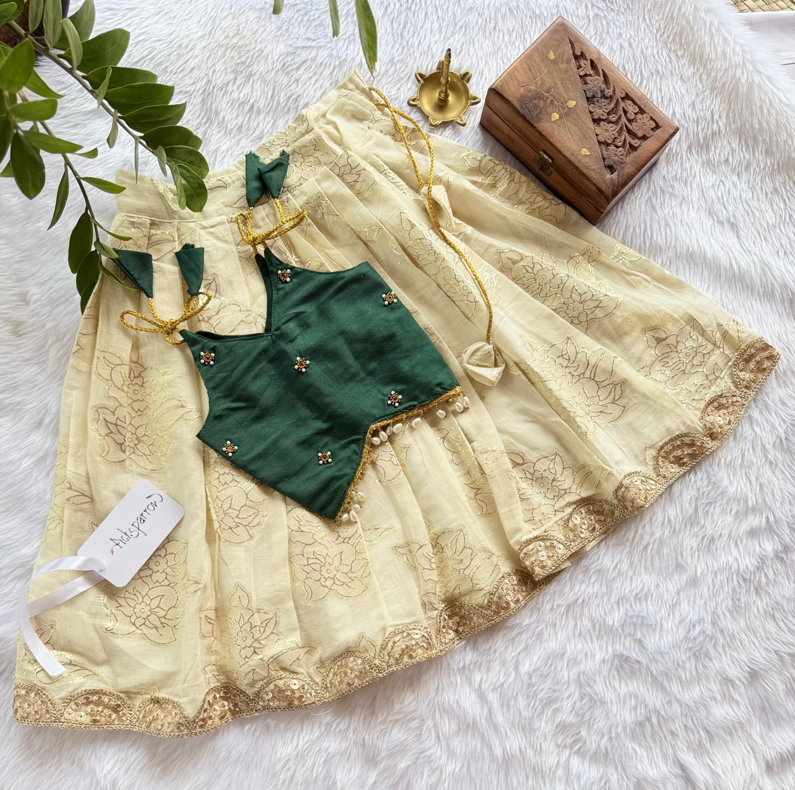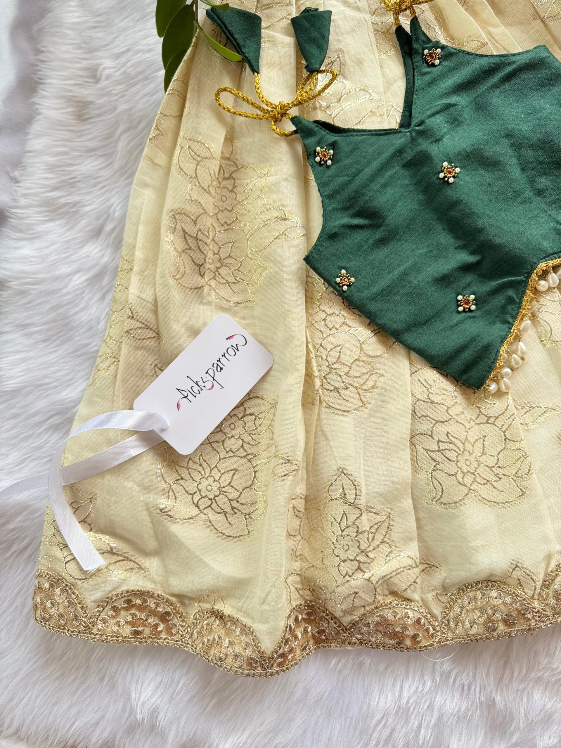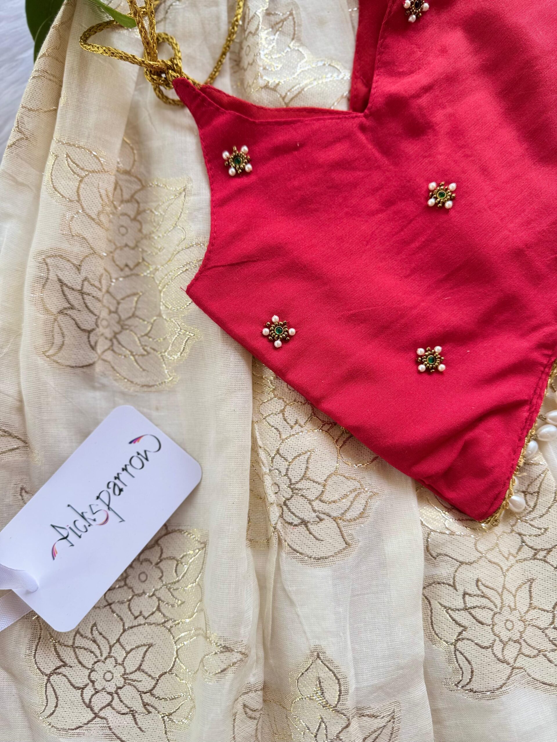 💚COTTON SILK – HAND WORK PATTUPAVADA – Pattupavada/Traditional wear/Ethnic wear for your little princess from Picksparrow. The elegant outfit is suitable for baby girls and can be used for any festive occasion like the naming ceremony, Diwali, birthday celebration, Onam, Vishu, Pongal etc.